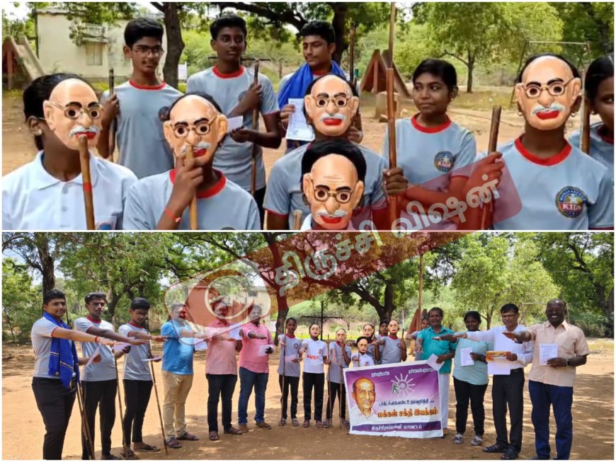 திருச்சியில் காந்தி ஜெயந்தியை முன்னிட்டு காந்தி முக வேடம் அணிந்து மக்கள் சக்தி இயக்கம் சார்பில் மது விலக்கு மற்றும் போதை ஒழிப்பு  கையெழுத்து இயக்கம் தொடங்கியது.