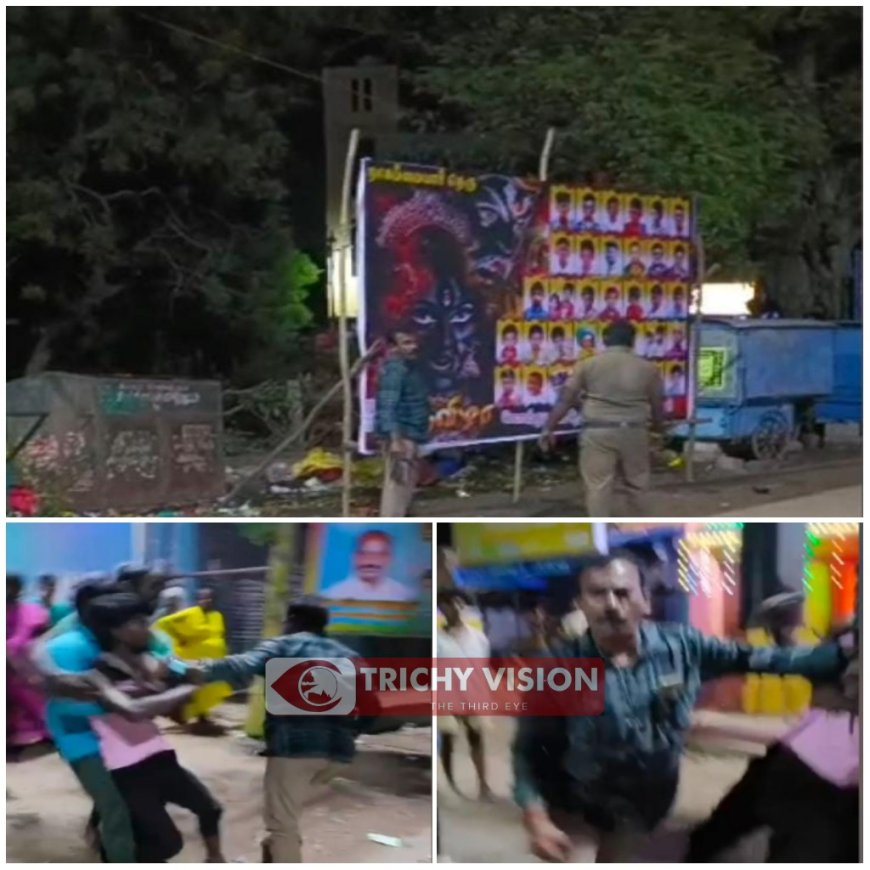 திருச்சி மாவட்டம் லால்குடி அருகே நாகம்மையார் தெரு உள்ளது. அங்கு உள்ள கோவிலில் திருவிழா நடைபெற்று வருகிறது. அந்த திருவிழாவை முன்னிட்டு சாலையில் உரிய அனுமதி இன்றி அப்பகுதி இளைஞர்கள் பேனர் வைத்துள்ளனர். உரிய அனுமதியின்றி வைக்கப்பட்ட பேனரை லால்குடி காவல் நிலைய காவல் ஆய்வாளர் மற்றும் போலீசார் இருவர் அப்புறப்படுத்த முயன்றனர்.