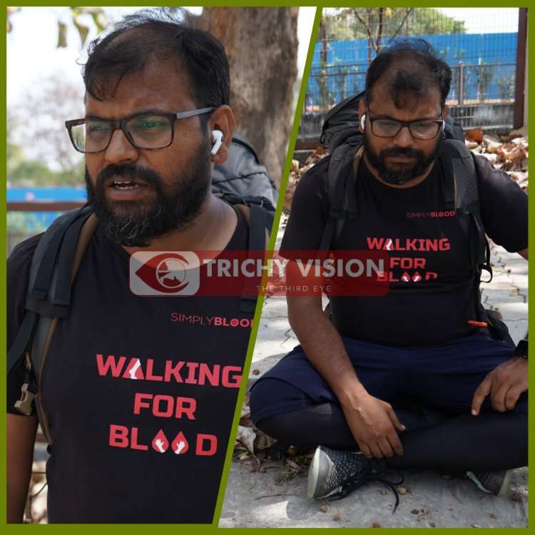அதிகரித்து வரும் கோவிட் வழக்குகள் காரணமாக, இந்தியாவில் தன்னார்வ இரத்த தானம் கடந்த 2 ஆண்டுகளில் இருந்து கணிசமாகக் குறைந்து வருகிறது. இரத்த வங்கிகள் மற்றும் மருத்துவமனைகள் இரத்தத்தில் வறண்டு போகாமல் இருக்க, இந்த கடினமான நேரத்திலும் மக்களை வெளியே சென்று இரத்த தானம் செய்ய ஊக்குவிக்க இந்த நடைப்பயணம். இதுவரை திருவனந்தபுரம், கொல்லம், ஆலப்புழா, எர்ணாகுளம், திருச்சூர், மலப்புரம், கோழிக்கோடு, மாஹே, கண்ணூர், காசர்கோடு, மங்களூரு, உடுப்பி, சிக்மங்களூரு, பெங்களூர், ராமநகரா, மாண்டியா, மைசூர், நீலகிரி, கோயம்புத்தூர், திருப்பூர், மதுரை, விருதுநகர், திருநெல்வேலி, கன்னியாகுமரி, ராமேஸ்வரம், சிவகங்கை, புதுக்கோட்டை ஆகிய மாவட்டங்களைக் கடந்து 2200 கிலோமீட்டருக்கும் மேல் கடந்து திருச்சி வந்தடைந்துள்ளார் 4 மார்ச் 2022.