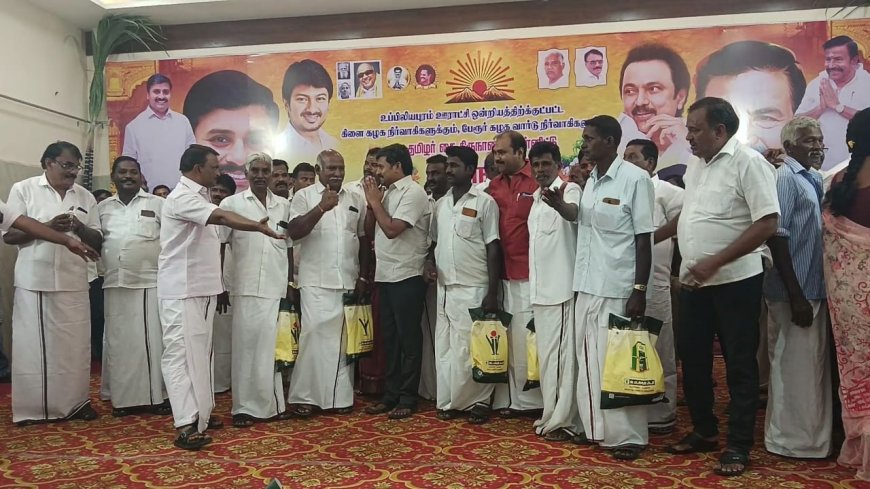 திருச்சி மாவட்டம் துறையூர் உப்பிலியபுரம் ஊராட்சி ஒன்றியத்திற்கு உட்பட்ட ஊராட்சி கிளைக் செயலாளர் மற்றும் பிரதிநிதி பொருளாளர் துணைச் செயலாளர் அவைத் தலைவர் ஆகியோருக்கு திமுக சார்பில், பொங்கல் விழா கொண்டாடுவதற்கு ஏதுவாக
