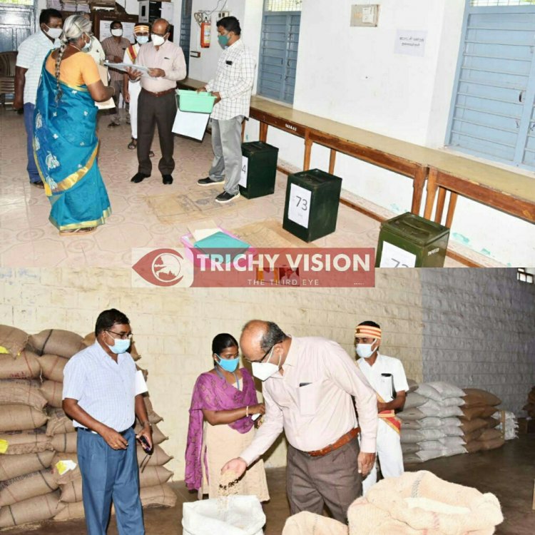 பின்னர், திருச்சிராப்பள்ளி மாவட்டம், வையம்பட்டி ஊராட்சி ஒன்றிய அலுவலகத்தில் வாக்குப் பதிவுப் பெட்டிகள் தயார் நிலையில் உள்ளதை மாவட்ட மாவட்ட ஆட்சித்தலைவர் சு.சிவராசு நேரில் பார்வையிட்டு ஆய்வு செய்தார். இதைத் தொடர்ந்து, திருச்சிராப்பள்ளி மாவட்டம், வையம்பட்டி ஊராட்சி ஒன்றியம் கருங்குளம், தொடக்க வேளாண்மை கூட்டுறவுக் கடன்சங்கம் அலுவலகத்தையும், பதிவேடுகளையும் மாவட்ட ஆட்சித்தலைவர் நேரில் பார்வையிட்டு ஆய்வு செய்தார்.
