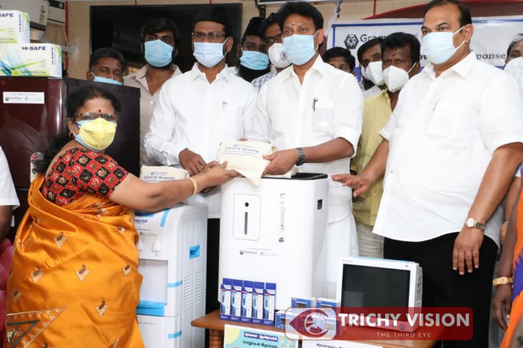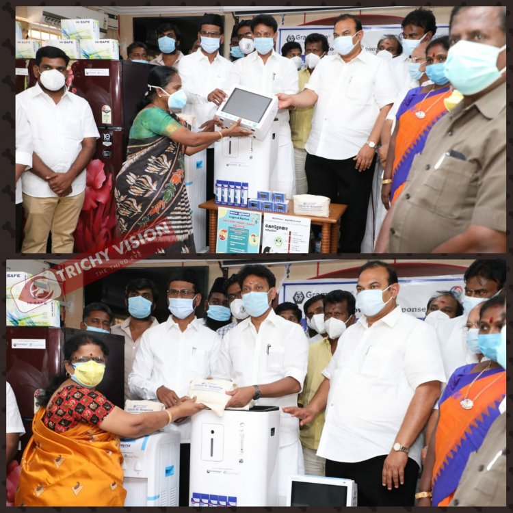 திருச்சி கிராமாலயா மற்றும் கிவ்2ஏசியா தொண்டு நிறுவனம் இணைந்து கொரோனா தடுப்பு மருந்து உபகரணங்கள், பாதுகாப்பு சாதனங்கள் மற்றும் சுகாதார பொருட்களை அரசு மருத்துவமனை மற்றும் ஆரம்ப சுகாதார நிலையங்களுக்கு வழங்கினர். இந்நிகழ்ச்சிகள் திருச்சி சுகாதார பணிகள் துணை இயக்குனர் அலுவலகத்தில் நடைப்பெற்றது. இதில் பள்ளி கல்விதுறை அமைச்சர் அன்பில் மகேஷ் பொய்யாமொழி கலந்து கொண்டு பொருட்களை சுகாதார துறை அதிகாரிகளிடம் வழங்கினார்.