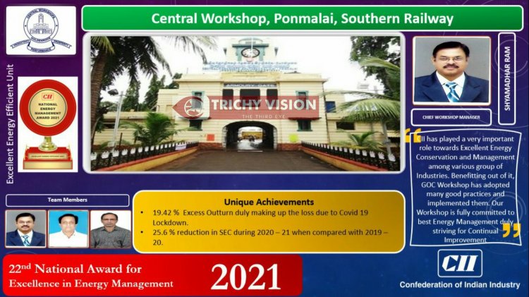 பொன்மலை பணிமனைக்கு சிறந்த ஆற்றல் மேலாண்மைக்கான விருது