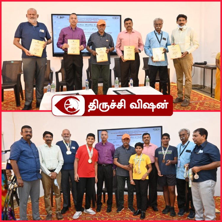 திருச்சியில் மாநில அளவிலான துப்பாக்கி சுடுதல் போட்டியில் வென்றவர்களுக்கு பரிசளிப்பு