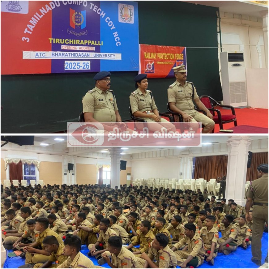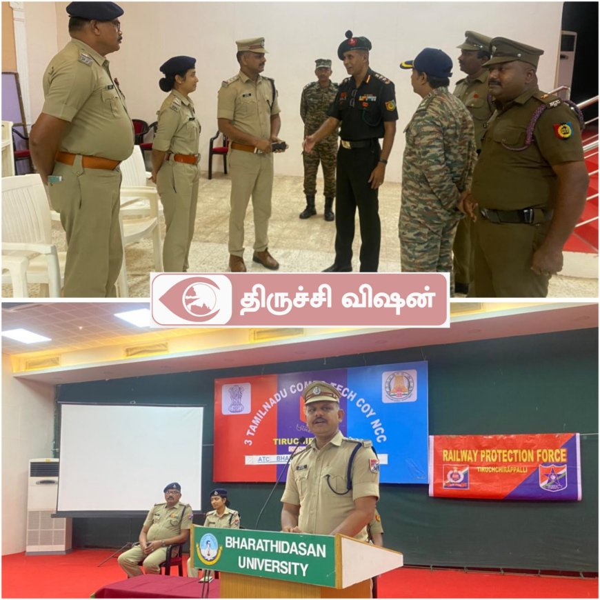 இன்று 18.06.2025, திருச்சி ரயில்வே பாதுகாப்பு படை முதுநிலை கோட்ட ஆணையர் Dr. அபிஷேக் மற்றும் உதவி ஆணையர் திரு. பிரமோத் நாயர் ஆகியோர்களது உத்தரவின் பேரில் திருச்சி RPF இன்ஸ்பெக்டர் திரு.அஜய் குமார் அவர்கள் தலைமையில் திருச்சி பாரதிதாசன் பல்கலைக்கழகத்தில் பள்ளி