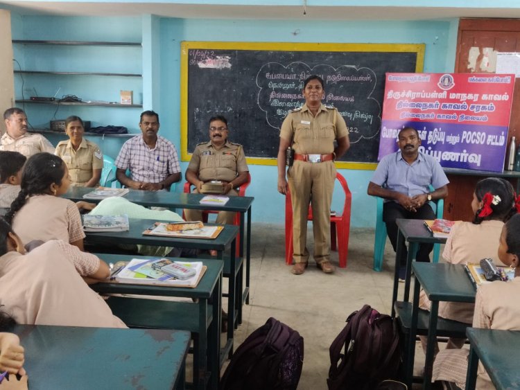 திருச்சி மாநகர காவல்துறை ஆணையர் உத்தரவின்படி, துணை காவல் ஆணையர் (வடக்கு) அறிவுறுத்தலின்படி, தில்லைநகர் சரக காவல் உதவி ஆணையர் ஆலோசனையின் பேரில் 01.04.2022 தில்லைநகர் காவல் நிலையம் சார்பில் குழந்தை உரிமை பாதுகாப்பு, போதைப்பொருள் தடுப்பு மற்றும் மறுவாழ்வு குறித்த விழிப்புணர்வு நிகழ்ச்சி சுப்பையா நினைவு நடுநிலைப்பள்ளியில் பள்ளி தலைமை ஆசிரியர் ஜீவானந்தன் தலைமையில் நடைபெற்றது. தில்லைநகர் காவல் நிலைய ஆய்வாளர் சிந்துநதி குழந்தைகள் உரிமை பாதுகாப்பு, போதைப்பொருள் தடுப்பதில் குழந்தைகளின் பங்கு, போதை பொருளினால் ஏற்படும் பிரச்சனைகள் குறித்து மாணவர்களிடம் கலந்துரையாடினர்.