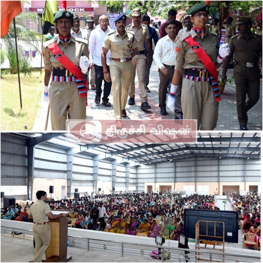 நேரு நினைவு கல்லூரி நிறுவனத்தலைவர் திரு. பொன்.ராதாகிருஷ்ணன் மற்றும் கல்லூரி பேராசிரியர்களுடன் ஒன்றிணைந்து மாணவ மாணவிகளுக்கு திருச்சி மாவட்ட காவல் கண்காணிப்பாளர் அவர்கள் பெண்கள், குழந்தைகள் மற்றும் பொதுமக்களுக்கான உதவி எண் 181, 112, kavalan உதவி APP மற்றும் பெண்கள் பெண் குழந்தைகள் பாதுகாப்பு குறித்தும்