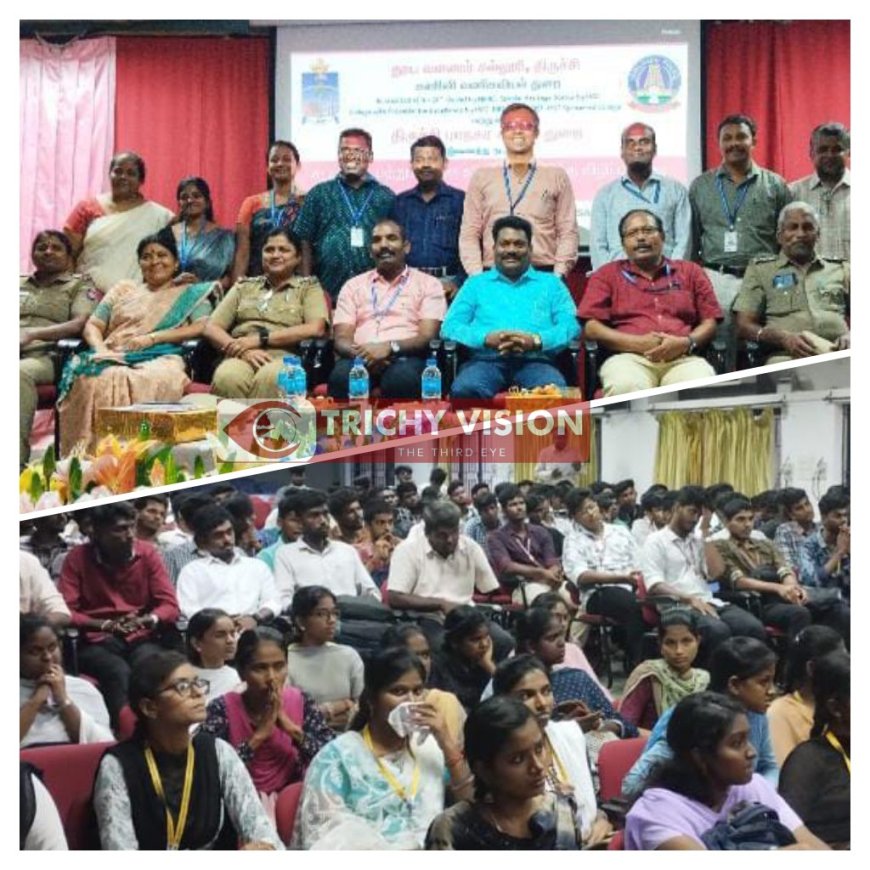 திருச்சி மாநகர காவல் துறை சமூக நீதி மற்றும் மனித உரிமை பிரிவு சார்பில் சமூக நீதி மற்றும் மனித உரிமை குறித்த விழிப்புணர்வு நிகழ்ச்சி திருச்சி தூய வளனார் கல்லூரியில் இணை முதல்வர் முனைவர் ராஜேந்திரன் தலைமையில் நடைபெற்றது.