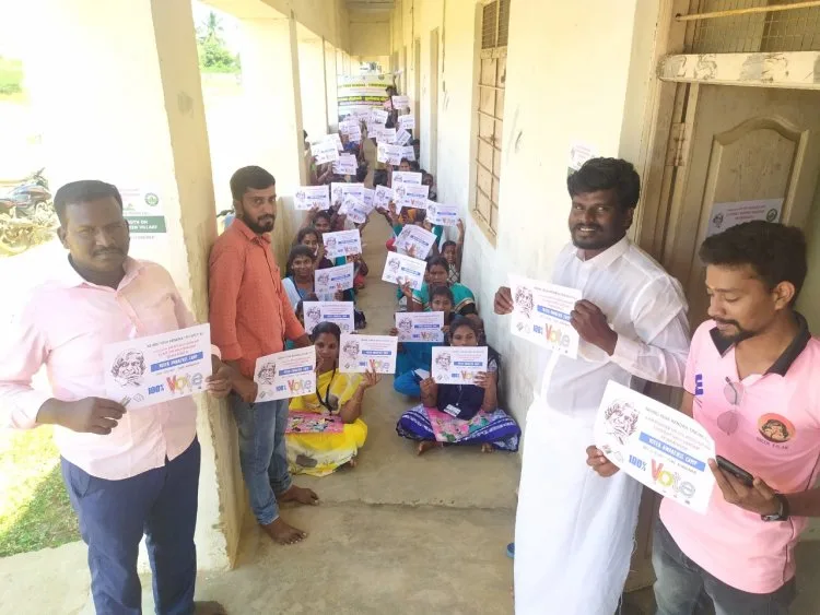 100%வாக்களிப்பதன் அவசியத்தை வலியுறுத்தி விழிப்புணர்வு ஏற்படுத்தும் பொருட்டு துண்டுப்பிரசுரங்கள் ஏந்தி விழிப்புணர்வு ஏற்படுத்தினர்.