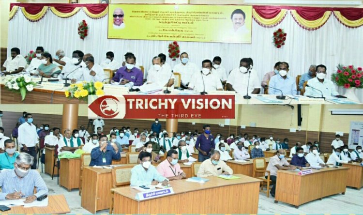 திருச்சி மாவட்ட ஆட்சித் தலைவர் அலுவலகத்தில் வருகிற 2020 -2021 ஆண்டுக்கான வேளாண் துறைக்கு தனி பட்ஜெட் தாக்கல் செய்வது தொடர்பாக விவசாயிகள் விவசாய சங்க பிரதிநிதிகளுடன் கருத்து கேட்பு கூட்டம் நடைபெற்றது. நகர்ப்புற வளர்ச்சித்துறை அமைச்சர் கே என் நேரு தலைமையில் நடைபெற்ற கூட்டத்தில் வேளாண்மை மற்றும் உழவர் நலத்துறை அமைச்சர் எம்.ஆர்.கே பன்னீர் செல்வம், மாவட்ட ஆட்சியர் சிவராசு மற்றும் வேளாண்துறை அதிகாரிகள் கலந்து கொண்டனர்.