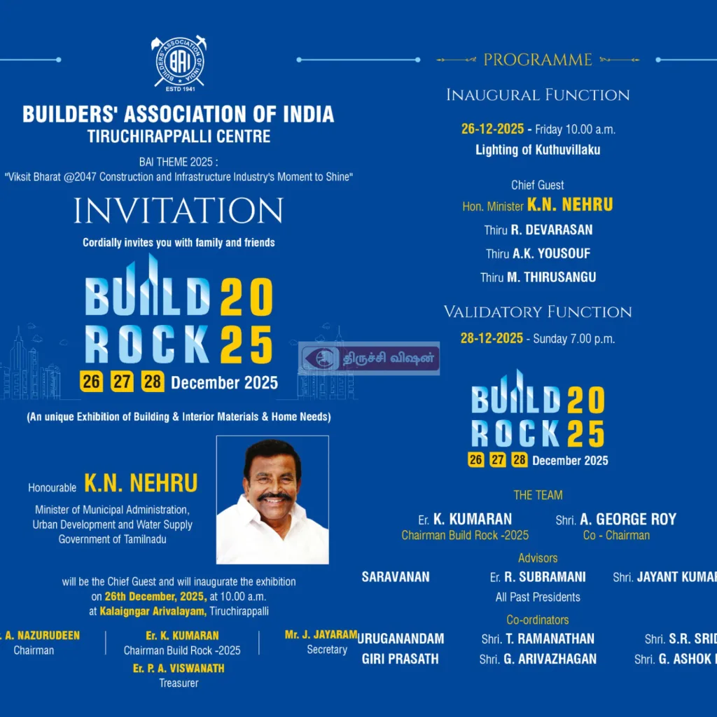 கட்டியெழுப்புவதன் வெற்றிப் பயணத்தை வளப்படுத்தும் ஒரு கண்காட்சியாகும். பாரம்பரியமாக டிசம்பர் மாதத்தில் ஏற்பாடு செய்யப்படும் BUILDROCK, திருச்சியில் பெரும் வெற்றியைப் பெற்றுள்ளது.