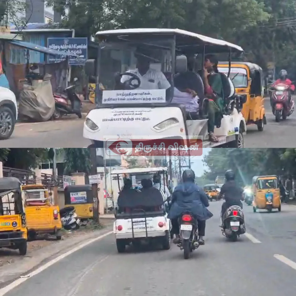 இறக்கி விடுவதற்கு பேட்டரி வாகனம் உள்ளது. அந்த வாகனத்தை தற்பொழுது திருச்சி மாவட்ட ஆட்சியர் அலுவலகத்தில் இருந்து கலெக்டர் அலுவலக சாலை வழியாக நீண்ட தூரம் பயணித்து அதில்