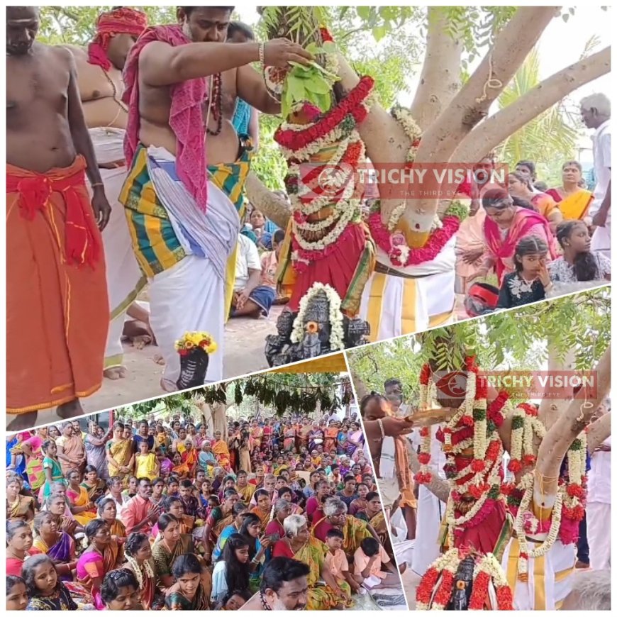 திருச்சியை அடுத்த திருவெறும்பூர் அருகே உள்ள வேங்கூர் கீழமுறு க்கூர் கிராமத்தில் கடந்த 9 ஆண்டுகளுக்கு முன்பு கிராம மக்களால் சிறிய கன்றாக வேப்ப மரமும், அரச மரமும் அருகே நட்டு வைக்கப்பட்டது. தற்பொழுது 9 ஆண்டுகளுக்குப் பிறகு அது வளர்ந்து அழகாக காட்சியளித்து வருகிறது.
