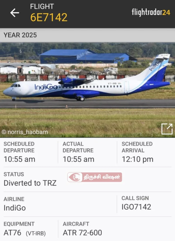 ஒன்று, புதுச்சேரியில் நிலவிய மோசமான வானிலை மற்றும் பலத்த மழை காரணமாக அவசரமாகத் திருச்சிக்குத் திருப்பி விடப்பட்டது.