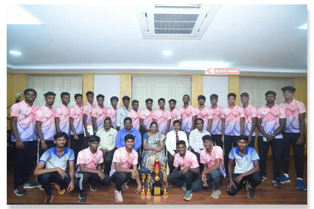 வி. ராஜேஷ் கண்ணன், ஆர். சக்தி கிருஷ்ணன் ஆகியோர் சிறப்பு விருந்தினராகளாக கலந்து கொண்டு, பேராசிரியர் மற்றும் விளையாட்டு செயலாளர் ஏ. மெஹபூப் ஜான், திருச்சி மாவட்ட விளையாட்டு அலுவலர் ஓ. ஞானசுகந்தி ஆகியோர் முன்னிலையில் பரிசுகளை வழங்கினார்.