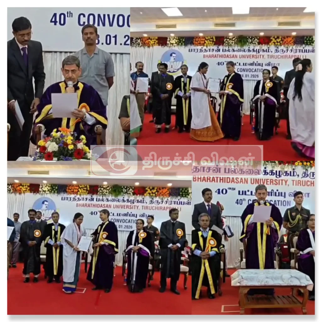 திருச்சி பாரதிதாசன் பல்கலைக்கழகத்தின் 40-வது பட்டமளிப்பு விழா, பல்கலைக்கழக பட்டமளிப்பு விழா அரங்கில் இன்று நடைபெற்றது. இதில்