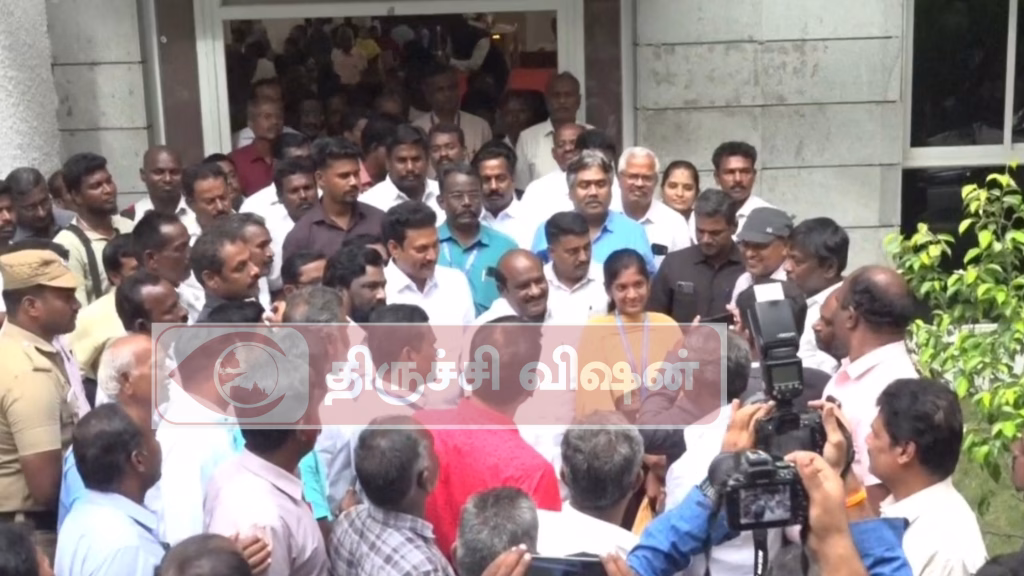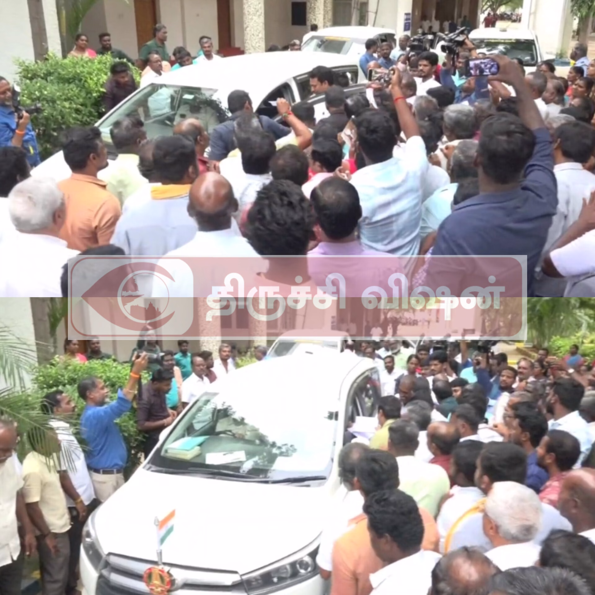 திருச்சிராப்பள்ளி பாரதிதாசன் பல்கலைக்கழகத்தில் நடைபெற்ற நூல்களை கொண்டாடுவோம் என்ற நூலகர் தின விழாவில் பங்கேற்பதற்காக வருகை தந்த உயர்கல்வித்துறை அமைச்சர் கோவி.செழியனை பல்கலைக்கழகத்தில் பணியாற்றும் அனைத்து நிலை ஊழியர்கள் முற்றுகையிட்டதால் பரபரப்பு ஏற்பட்டது.