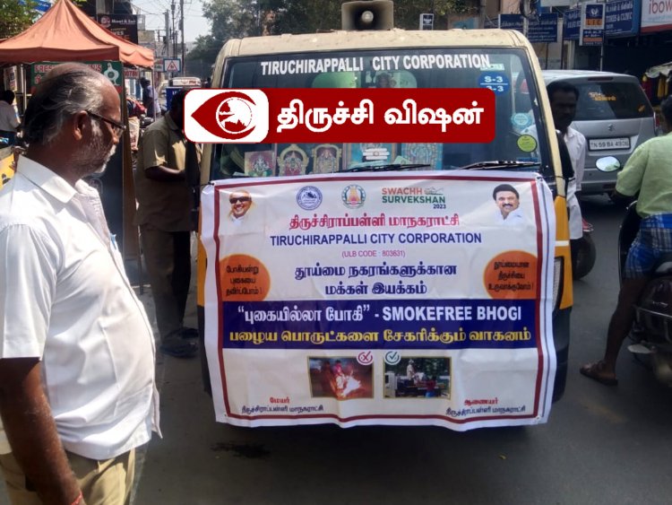 போகிப் பண்டிகையை முன்னிட்டு, சுற்றுச்சூழல் மாசுபாடு ஏற்படுவதைத் தவிர்க்கும் வகையில் பொதுமக்கள் தங்களிடம் உள்ள பயன்பாட்டில் இல்லாத பொருட்களை எரிப்பதைத் தவிர்த்து, மாநகராட்சியின் தூய்மைப் பணியாளர்களிடம் வழங்க வேண்டும் என்று திருச்சி மாநகராட்சி அறிவுறுத்தி உள்ளது.