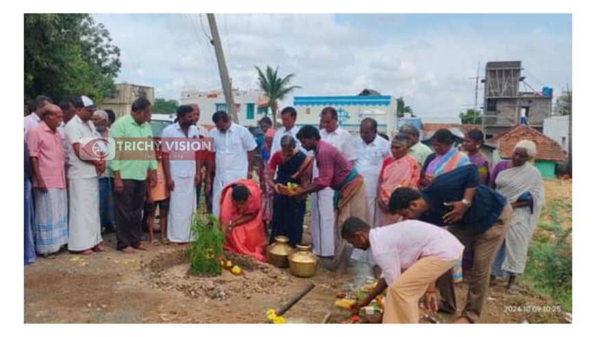 திருச்சி மாவட்டம் லால்குடி அருகே புள்ளம்பாடி ஒன்றியம் வரகுப்பை ஊராட்சியில் ஒன்றிய பொதுநிதியில் இருந்து ரூபாய் 7 லட்சம் மதிப்பீட்டில் புதிய நிழற்குடை அமைப்பதற்கான பூமி பூஜையை லால்குடி சட்டமன்ற உறுப்பினர் சௌந்தரபாண்டியன் கலந்து கொண்டு அடிக்கல் நாட்டினார்.
