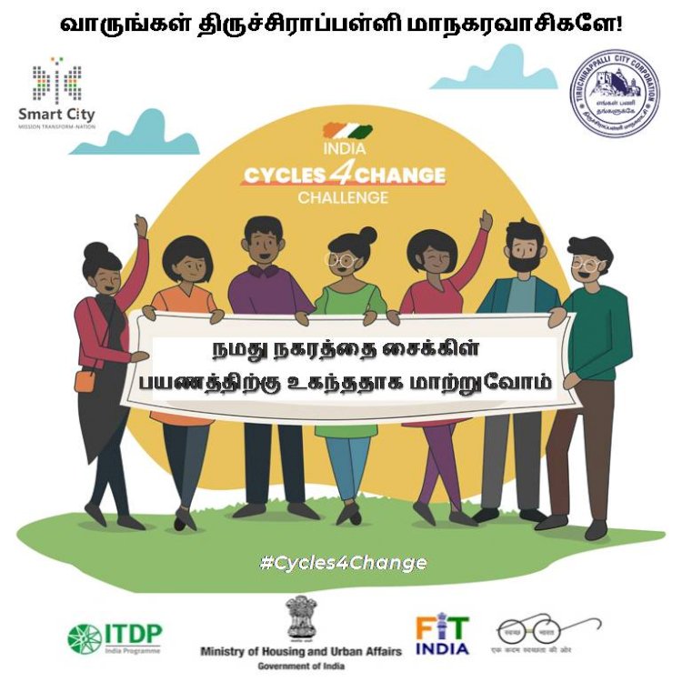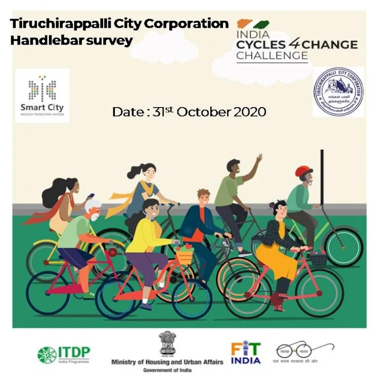 திருச்சி மாநகராட்சியின் சீர்மிகு நகர திட்டத்தின் கீழ் CYCLING 4 CHANGE- CHALLENGE சர்வே இந்த மாதம் 14ம் தேதி வரை நடத்தி முடிக்கப்பட்டது. இதில் திருச்சி மாநகர பொதுமக்கள் சுமார் 4673 பேர் தங்களது கருத்தினை கணினி வலைதளம் வாயிலாக பதிவேற்றம் செய்துள்ளனர். இதற்காக பொதுமக்கள் மிதி வண்டி ஓட்டுவதை ஊக்குவிப்பதற்கும் வகையில் மிதிவண்டி விழிப்புணர்வு பேரணி நடைபெற உள்ளதாக மாநகராட்சி ஆணையர் சிவசுப்பிரமணியன் தகவல் தெரிவித்துள்ளார்.