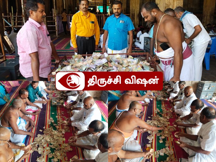 ஸ்ரீரங்கம் அருள்மிகு அரங்கநாதசுவாமி திருக்கோயில் மாதந்திர உண்டியல்கள் திறக்கப்பட்டு இன்று (26.10.2022) கோயில் இணை ஆணையர் செ.மாரிமுத்து முன்னிலையில் உண்டியல்கள் திறக்கப்பட்டு மலைகோட்டை தாயுமானவர் சுவாமி திருக்கோயில் உதவி ஆணையர் ஆர் ஹரிஹர சுப்பிரமணியன் , கோயில் மேலாளர் திருமதி கு.தமிழ்செல்வி ஆகியோர் மேற்பார்வையில் திருக்கோயில் பணியாளர்கள் மற்றும் தன்னார்வர்களால் பக்தர்களின் காணிக்கைகளை கணக்கிட்டனர்.