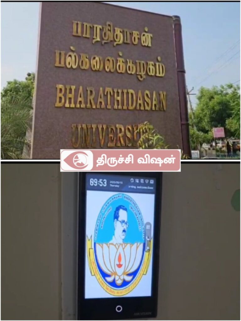 வேண்டும் எனவும் இதன் மூலம் பணியாளர்கள் சரியான நேரத்தில் அலுவலக பணிக்கு வருகை புரிவது உறுதி செய்ய வேண்டும் என்றும் தெரிவித்து உயர்கல்வித் துறை அனைத்து பல்கலைக்கழகழகங்களுக்கும் சுற்றறிக்கை அனுப்பியது. அதன்படி இன்று 15ஆம் தேதி முதல் பாரதிதாசன் பல்கலைக்கழகத்தில் நிரந்த பணிகளில் பணி புரியும் ஆசிரியர் மற்றும் அலுவலக பணியாளர்களுக்கு அலுவலக வேலை நாட்களில் பயோமெட்ரிக்