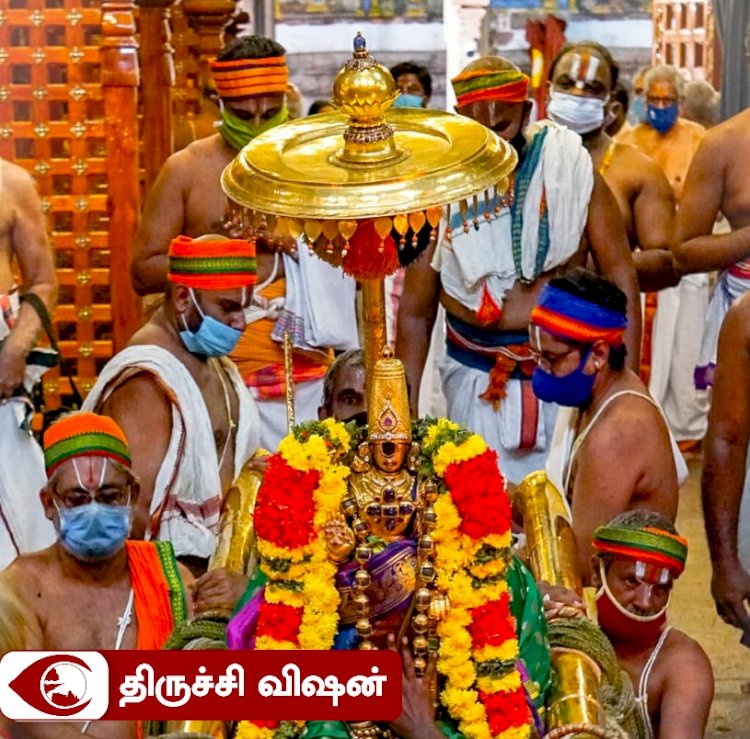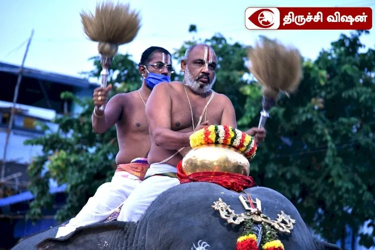108வைணவ ஸ்தலங்களில் முதன்மையானதும், பூலோக வைகுண்டம் என பக்தர்களால் போற்றப்படுவதுமான ஸ்ரீரங்கம் அரங்கநாதர் ஆலயம் மிகவும் பிரசித்தி பெற்றதாகும். ரெங்கநாதர் ஆலயத்தில் இன்று முதல் துலாம் மாதம் துவங்கிறது, இதனையொட்டி ஸ்ரீரங்கம் கோவிலிலிருந்து தங்ககுடம் எடுத்துவந்து, அம்மா மண்டபம் புனித திருக்காவிரியிலிருந்து திருமஞ்சனம்(புனிதநீர்) கோவில் யானை ஆண்டாள் மீது ஊர்வலமாக கோவிலுக்கு கொண்டுவரப்பட்டு நம்பெருமாளுக்கு அபிஷேகம் செய்யப்பட்டது.