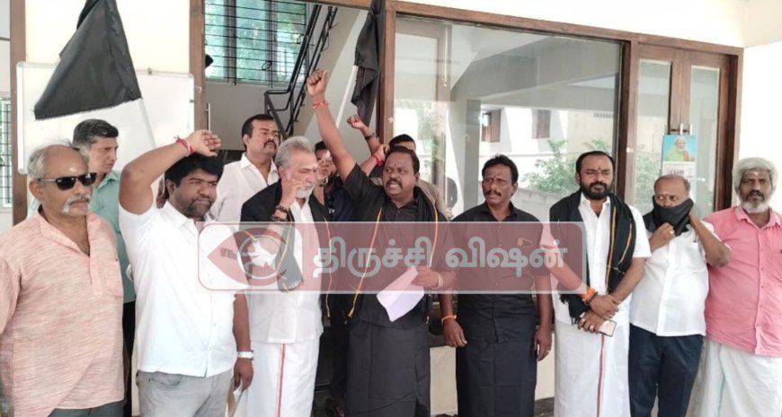 தமிழகத்திற்கான காவிரி நீரை பெற்றுதராமல், தமிழகத்தில் சட்டம் ஒழுங்கை பாதுகாக்காமல், பெண்கள் மற்றும் குழந்தைகளுக்கு எதிரான குற்றச்சம்பவங்களை தடுக்க தவறியதுடன், தொகுதி மறுவரையைறைக்கு எதிராக திமுக நடத்தும் நாடகத்தில் கர்நாடக முதல்வர் டி .கே சிவகுமார், கேரளா முதல்வர் பினராய் விஜயனுக்கு தமிழகத்தில் சிகப்பு கம்பளம் வரவேற்பளிப்பதை கண்டித்தும், டாஸ்மாக்களை திறந்து தமிழக மக்களை குடிகாரர்கள் ஆக்கிய ஸ்டாலினை கண்டித்து பாஜக மாவட்ட அலுவலகத்தில், பாஜக மாநில பொதுச் செயலாளர் கருப்பு முருகானந்தம் தலைமையில் கருப்புக்கொடி போராட்டம் நடைபெற்றது.
