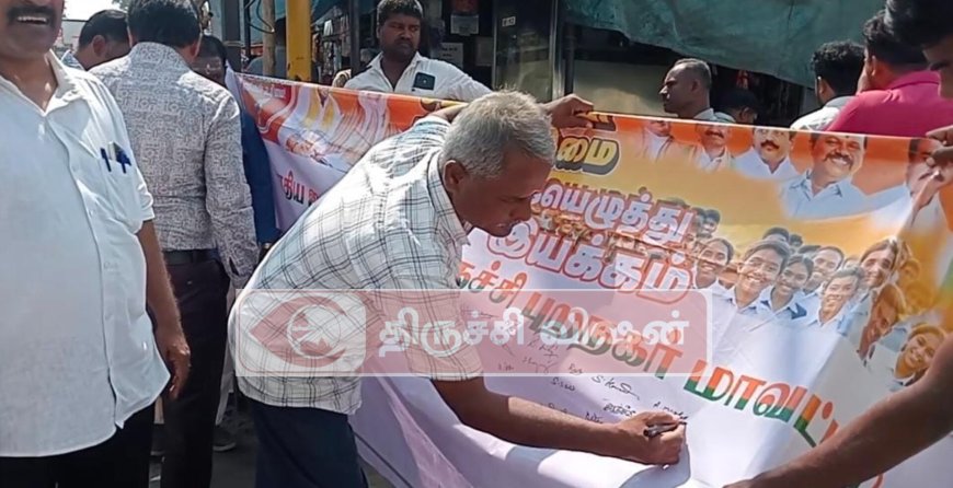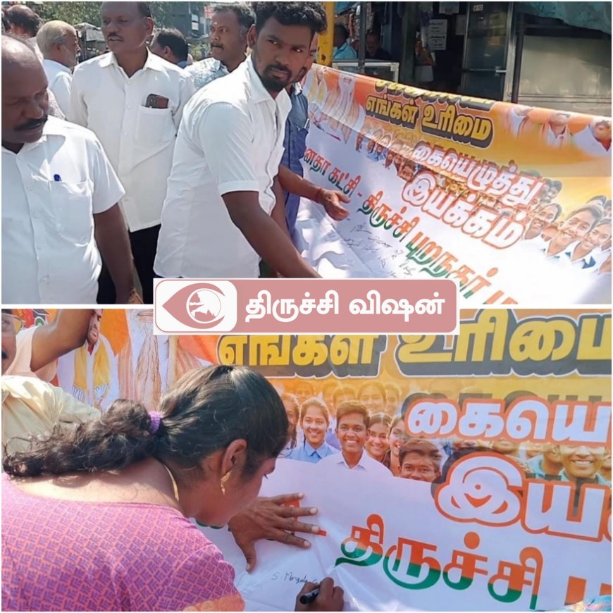 இந்நிலையில் தற்போதைய சூழ்நிலையில் ஹிந்தி மொழியின் அவசியத்தை வலியுறுத்தியும் மும்மொழி கொள்கைக்கு தமிழகத்தில் ஆதரவு உள்ளது என்பதை பாரதிய ஜனதா கட்சி நிரூபிக்கும் விதமாக கையெழுத்து இயக்கத்தை நடத்தி வருகின்றனர். தொடர்ச்சியாக முசிறி கைகாட்டியில் நடைபெற்ற நிகழ்ச்சிக்கு பாரதிய ஜனதா கட்சியின் முசிறி நகர மண்டல் தலைவர் தமிழ்ச்செல்வன் தலைமையில் வழக்கறிஞர் அணி நிர்வாகி திருமலை ராஜன் உள்ளிட்ட பலர் முன்னிலையில் மத்திய அரசு நலத்திட்ட பிரிவு மாவட்ட துணை தலைவர் மங்கள கௌரி கையெழுத்து இயக்கத்தை துவக்கி வைத்தார்.