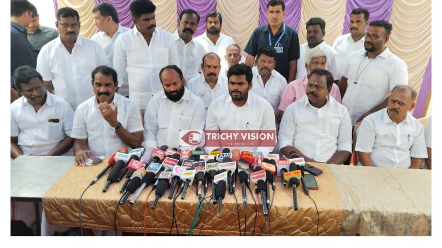திருச்சி எடமலைப்பட்டி புதூரில் உள்ள பாஜக நிர்வாகி இல.கண்ணன் இல்ல திருமண விழா கடந்த சில நாட்களுக்கு முன்பு நடைபெற்றது. இதனை தொடர்ந்து இன்று அவரது வீட்டிற்கு வந்த தமிழக பாஜக மாநில தலைவர் அண்ணாமலை மணமக்களை வாழ்த்தினார்.