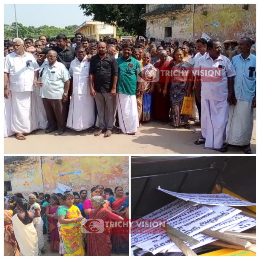 கடந்த 60 ஆண்டுகளுக்கு மேலாக சமயபுரம் மாரியம்மன் கோயிலில் உள்ளூர் மக்களும், உள்ளூர் கடை வியாபாரிகளும் கட்டணமின்றி அம்மனை தரிசனம் செய்து வழிபட்ட நிலையில் உள்ளூர் மக்களை கட்டணமின்றி தரிசனம் செய்ய அனுமதிக்காத கோயில் இணை ஆணையரைக் கண்டித்து 300க்கும் மேற்பட்டோர் போராட்டத்தில் ஈடுபட்டு வருகின்றனர்.