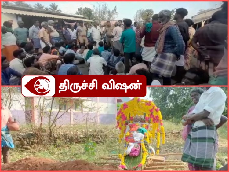திருச்சி மாவட்டம் துவரங்குறிச்சியை அடுத்த கரடிப்பட்டி காந்தி நகர் பகுதியை சேர்ந்தவர் ஆதியம்மாள். சம்பவத்தன்று இவர் உடல் நலக்குறைவால் இறந்து விட்டார். இந்நிலையில் அவரது உடலை மயானத்திற்கு கொண்டு செல்லும் பாதையில் தனியார் ஆக்கிரமிப்பு செய்து வைத்ததாக கூறப்படுகிறது.
