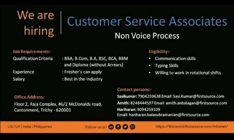 திருச்சி First source நிறுவனத்தில் வேலைவாய்ப்பு