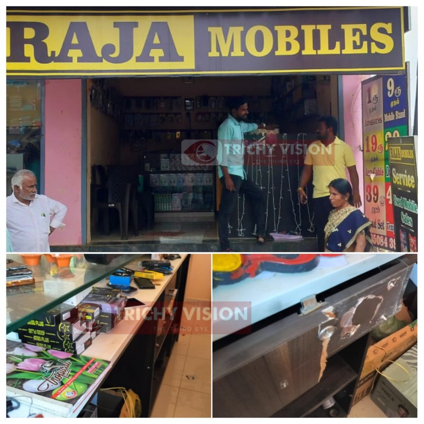 திருச்சி மாவட்டம் மணப்பாறை அத்திகுளம் பகுதியைச் சேர்ந்தவர் பூபதி ராஜா (26). இவர் மணப்பாறை காய்கறி மார்க்கெட் அருகே செல்போன் கடை மற்றும் செல்போன் பழுது நீக்கும் கடை வைத்துள்ளார். நேற்று கடையை மூடி விட்டு சென்று நிலையில் இன்று காலை கடை திறக்க வந்துள்ளார்.