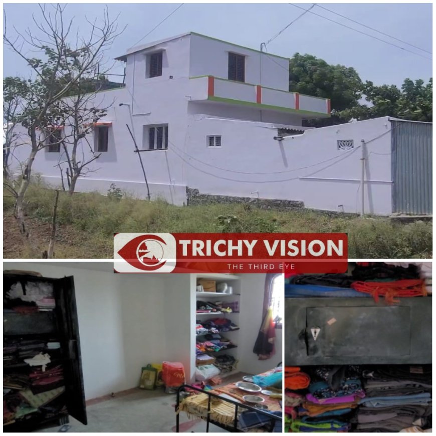 திருச்சி மாவட்டம், சிறுகனூர் அருகே உள்ள எம்.ஆர்.பாளையம் மேலத்தெருவை சேர்ந்தவர் ரவி. இவர் வழக்கம்போல் வேலைக்கு சென்றுவிட்டு வீட்டிற்கு திரும்பி வந்து பார்த்தபோது வீட்டின் பின்புறம் கதவின் பூட்டு உடைக்கப்பட்டு இருந்ததைக் கண்டு அதிர்ச்சி அடைந்துள்ளார்.