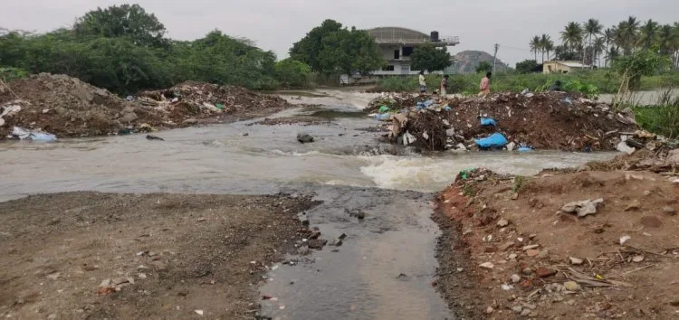வீடுகளை சுற்றி மழைநீர் சூழ்ந்ததற்க்கு கோரையாற்றில் மழைநீர் செல்ல முடியாத அளவுக்கு கட்டிட கழிவுகளை ஆற்றின் தரை பாலத்தில் கொட்டி உள்ளனர். மழைநீர் வேகமாக செல்ல முடியாமல் கிருஷ்ணாபுரம் மற்றும் குட்டி மலை ,கங்கை நகர் பகுதியில் உள்ள வீடுகளை நீர் சூழ்ந்தது என அப்பகுதி மக்கள் குற்றம் சாட்டுகின்றனர்.