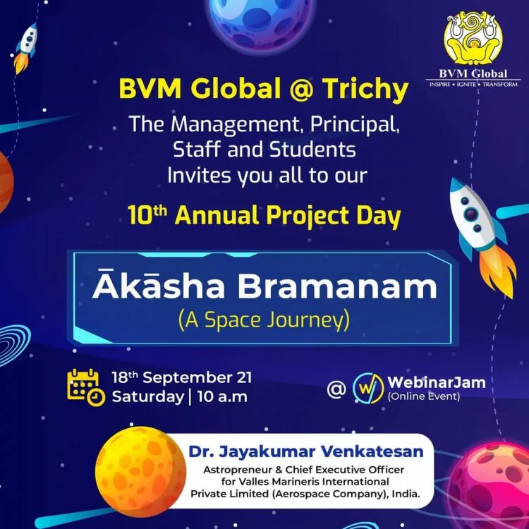 இணைய வழியில் நடைபெற்ற இவ் விழாவிற்கு சிறப்பு விருந்தினராக Mariners International pvt.Ltd நிறுவனத்தின் தலைமை நிர்வாக அதிகாரி ஜெயக்குமார் வெங்கடேசன் கலந்துகொண்டு விண்வெளி துறை சார்ந்த மாணவர்களின் கேள்விகளுக்கு பதில் அளித்ததோடு அவர்களை ஊக்கப்படுத்தவும் செய்தார்.