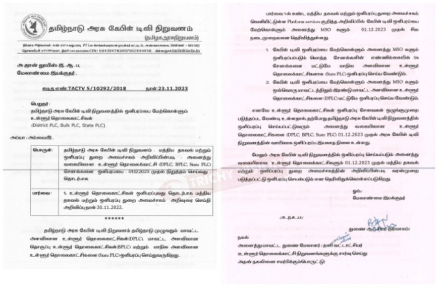 கேபிள் டிவி ஒளிப்பரப்பை மேற்கொள்ளும் அனைத்து MSOகளும் ஒவ்வொரு மாவட்டத்திலும் இரண்டு மாவட்ட அளவில் உள்ளூர் தொலைக்காட்சிகள் மட்டுமே ஒளிப்பரப்பு செய்ய வேண்டும். எனவே உள்ளூர் தொலைக்காட்சிகள் ஒளிப்பரப்பு சேவைகள் ஒழுங்குமுறைப்படுத்தப்பட வேண்டியுள்ளதால் தற்போது தமிழ்நாடு அரசு கேபிள் டிவி நிறுவனத்தில் ஒளிப்பரப்பு செய்யப்பட்டு வரும் அனைத்து வகையான உள்ளூர் தொலைக்காட்சிகளை டிசம்பர் 1ம் தேதி முதல் அரசு கேபிள் டிவி நிறுவனத்தின் வாயிலாக ஒளிபரப்ப இயலாத நிலை உள்ளது.