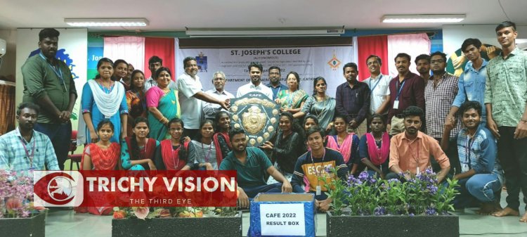 திருச்சி தூய வளனார் கல்லூரி, வணிகவியல் கணினித்துறை சார்பில் கல்லூரிகளுக்கு இடையேயான மாபெரும் கலைவிழா கஃபே’2022 என்ற தலைப்பில் நடைபெற்றது. இவ்விழாவில் கல்லூரி செயலர். அருட்திரு. பீட்டர் சே. ச தலைமை தாங்கினார். மேலாண்மைப் பள்ளி டீன் முனைவர். ஜான் முன்னிலை வகித்தார்.