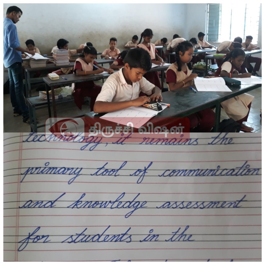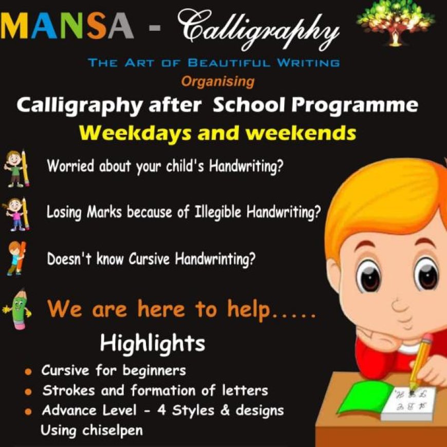திருச்சி கலை காவேரியில் வகுப்புகள் எடுத்து வருகிறோம் Mansa calligraphy எனது பெயரில் கடந்த 10 ஆண்டுகளுக்கு மேலாக பயிற்சி அளித்து வருகிறோம் .கொரோனா காலகட்டத்திற்கு பிறகு குழந்தைகளின் கையெழுத்தில் அதிக பள்ளிகள் கவனம் செலுத்தி வருகின்றனர் அந்த வகையில் பல்வேறு பள்ளிக்கூடங்களுக்கு சென்றுநான்காம் வகுப்பிற்கு மேல் உள்ள குழந்தைகளுக்கும், யூகேஜி படிக்கும் பள்ளி குழந்தைகளின் ஆசிரியர்களுக்கும் பயிற்சி அளித்து வருகிறோம். கோடை விடுமுறை நாட்களை குழந்தைகளுக்கு பயனுள்ளதாக மாற்ற நினைக்கும் பெற்றோர்களுக்கு இந்த பயிற்சியானது மிக சிறந்த ஒன்று இது குழந்தைகளின் கையெழுத்தை மட்டும் மாற்றாமல் குழந்தைகளின் குணாதிசயங்களையும் மாற்றும் என்கிறார்.