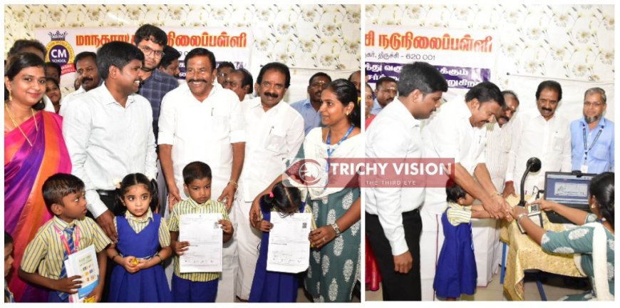அதன் அடிப்படையில், திருச்சி பீமநகர் பகுதியில் உள்ள, மாநகராட்சி நடுநிலைப்பள்ளியில், மாணவர்களுக்கு ஆதார் பதிவு செய்யும் பணியினையும், வங்கி கணக்கு, அஞ்சலக சேமிப்பு கணக்கு தொடங்குவதற்கான பணியினையும், நகராட்சி நிருவாகத்துறை அமைச்சர் கே.என்.நேரு இன்று தொடங்கி வைத்து பார்வையிட்டார்.