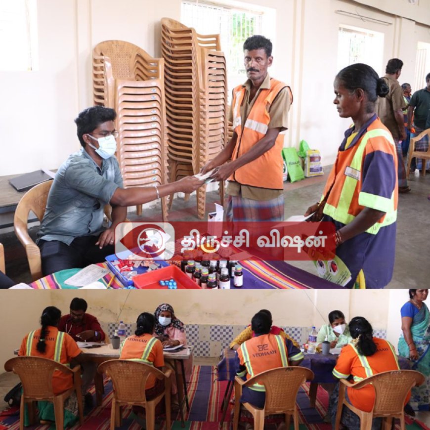 திருச்சிராப்பள்ளி மாநகராட்சி பங்களிப்புடன், வேதா (எஸ்.ஆர்.யுனைடெட் இன்ப்ரா டெவலப்பர்ஸ்) மற்றும் சீனிவாச மருத்துவக் கல்லூரி & மருத்துவமனை ஆகியவை இணைந்து இந்த மருத்துவ முகாமை நடத்தினர். சுமார் 250 க்கும் மேற்பட்ட தூய்மை பணியாளர்களுக்கு உடல் பரிசோதனை மேற்கொள்ளப்பட்டு அவர்களுக்கு தேவையான மருந்து பாட்டில்கள், விட்டமின் மாத்திரைகள் இலவசமாக வழங்கப்பட்டன.