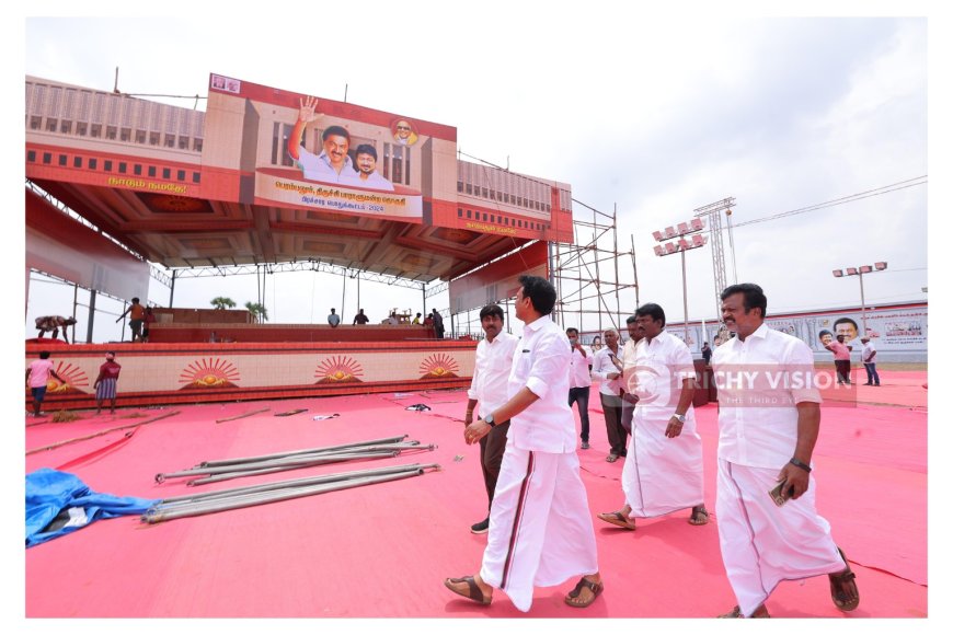 இதன் ஒரு பகுதியாக இந்திய கூட்டணியின் திராவிட முன்னேற்றக் கழக திருச்சி, பெரம்பலூர் பாராளுமன்ற தொகுதி வேட்பாளர்களை ஆதரித்து திருச்சி சிறுகனூரில் நாளை (22.03.24) நடைபெற இருக்கின்ற வேட்பாளர் அறிமுக பொதுக்கூட்டம் மைதானத்தில் பணிகளை நடைபெற்று வருகிறது.