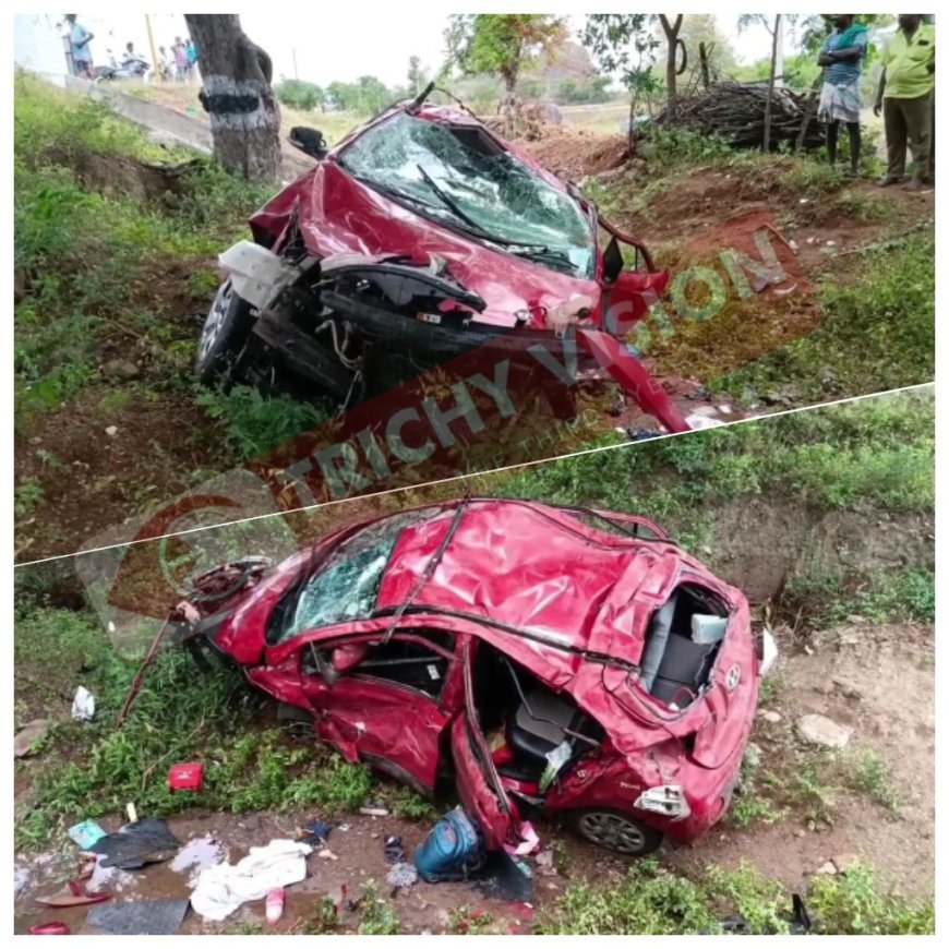 கார் துறையூர் அருகே உள்ள கிழக்கு வாடி பகுதியில் சென்று கொண்டிருந்த பொழுது ஓட்டுனரின் கட்டுப்பாட்டை இழந்த கார் சாலையோர பள்ளத்தில் கவிழ்ந்து விபத்துக்குள்ளானது. இந்த விபத்தில் காரில் இருந்த வெங்கடேசன் பலத்த காயமடைந்து சம்பவ இடத்திலேயே உயிரிழந்தார்.