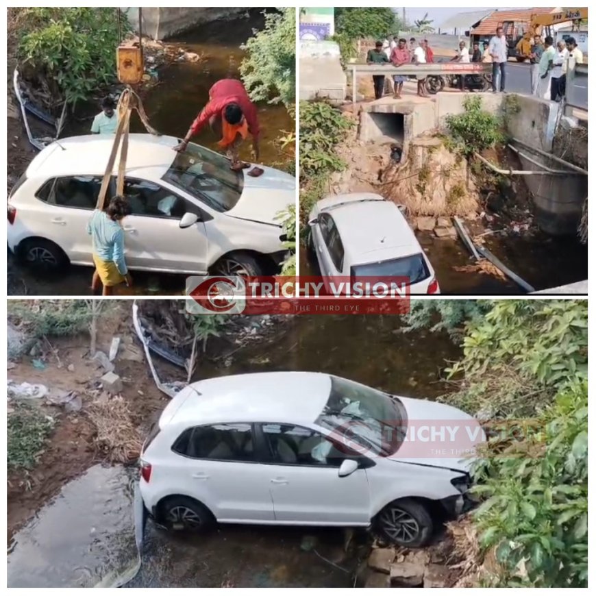 திருச்சி மாவட்டம் மருதூரை சேர்ந்தவர் வேலுச்சாமி (70). இவர் நாமக்கல்லில் இருந்து திருச்சி நோக்கி காரில் வந்து கொண்டிருந்தார். அப்போது திருச்சி – நாமக்கல் சாலையில் தொட்டியம் சீனிவாசநல்லூர் அருகே வந்து கொண்டிருந்த கார் எதிர்பாராதவிதமாக டிரைவரின் கட்டுப்பாட்டை இழந்து சாலையோரம் இருந்த வாய்க்காலில் விழுந்தது.