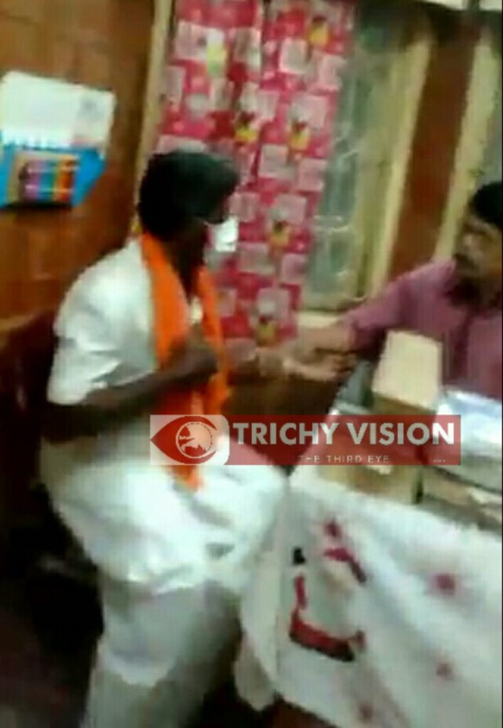 இந்து முன்னணி கட்சியின் திருச்சி மாவட்ட செயலாளராக இருப்பவர் ஆறுமுகம். இவர் கடந்த சில தினங்களுக்கு முன்பு திருச்சி உறையூரில் உள்ள கிங்ஸ்லிகிட்ஸ் கிளினிக்கு சென்று இருந்தார். அப்போது கழுத்தில் காவி துண்டும், கையில் ராக்கியும் கட்டியிருந்த ஆறுமுகத்தை பார்த்து நீங்கள் எந்த அமைப்பை சேர்ந்தவர் என்று மருத்துவர் கேட்டுள்ளார்.