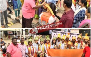 பதக்கங்களை வென்று திரும்பிய வீரர்களுக்கு திருச்சியில் மேள, தாளத்துடன்…