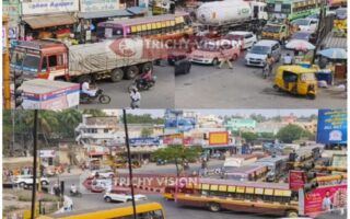 மதிய நேரத்தில் போக்குவரத்து நெரிசலில் சிக்கி தவிக்கும் திருச்சி…