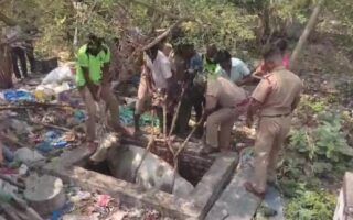 கழிவுநீர் தொட்டிக்குள் தவறி விழுந்த பசுமாடு. உயிருடன் மீட்ட…