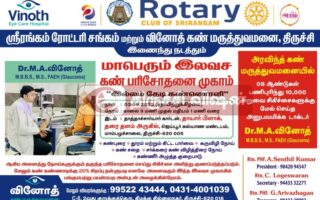 ஸ்ரீரங்கத்தில் நாளை (03.09.2023) இலவச கண் பரிசோதனை முகாம்!